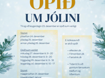Opið er í jólafrítíðini burtursæð frá trimum døgum á jólum og tveimum døgum um ársskiftið18. desember 2023