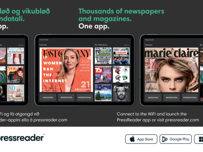 Á Býarbókasavninum ber nú til at lesa fleiri enn 7.000 bløð á 64 málum úr 155 londum. Talan er um talgild dagbløð, vikubløð og tíðarrit frá blaðveitaranum PressReader, sum tú nú kanst fáa atgeingi til á WiFi-netinum hjá Býarbókasavninum.01. oktober 2024