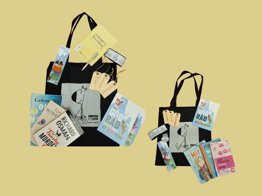 Tá tú lænir bøkurnar, fært tú ein vakran posa, bókamerki og faldara frá Føroyar Lesa. Og penn og endurskin frá Býarbókasavninum.